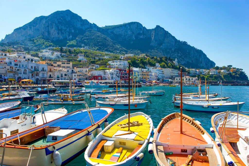 The well-known Capri Island that lies like a mermaid in the Gulf of Naples has always been synonymous with luxury and expensive holidays, often visited by many celebrities and show business stars. In addition to sun and sea baths, there are many places to visit on the island: from the magnificent Faraglioni cliffs to the Blue Cave (Grotta Azzurra), from the famous Piazzetta to the villa of Emperor Tiberius. In these places, you will be enchanted by this magical island.