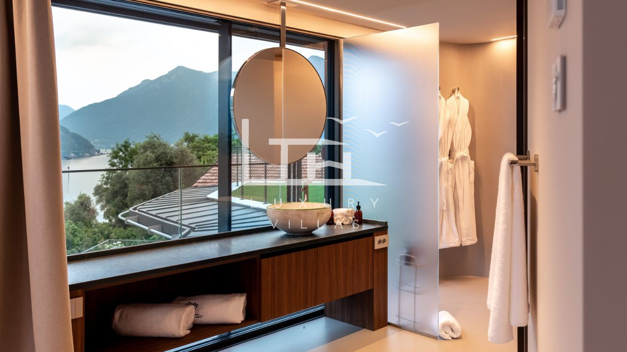 Offering a sweeping 180-degree panoramic vista of the central lake and the picturesque Isola Comacina, this residence promises an enchanting retreat.